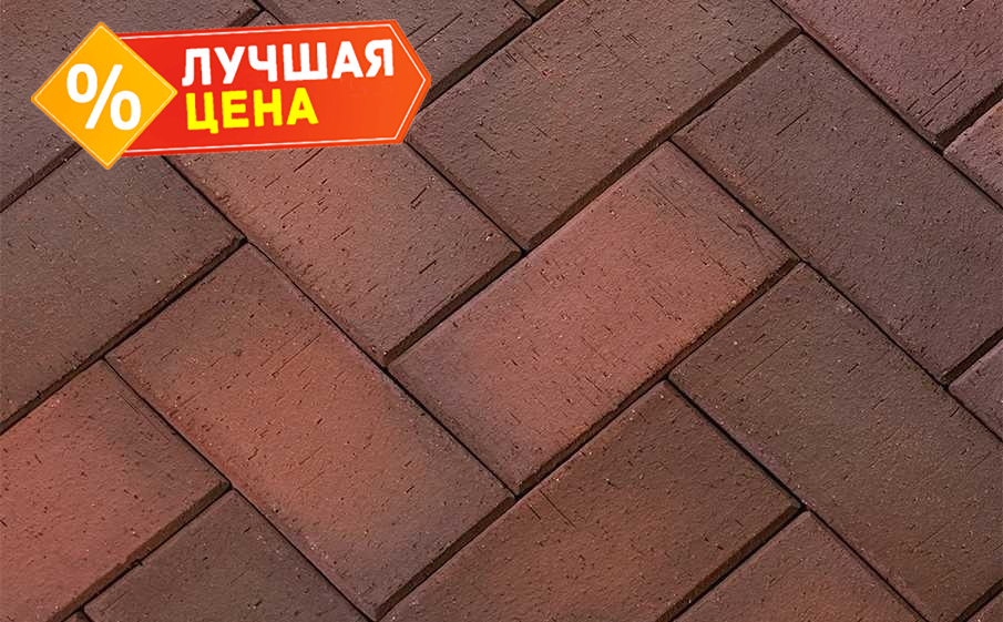 Клинкерная брусчатка ЛСР Глазго темно-красный флэшинг, 200x100x50 мм