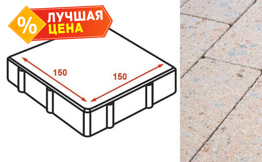 Плита тротуарная Готика Granite FINERRO, квадрат, Павловское 150x150x80 мм