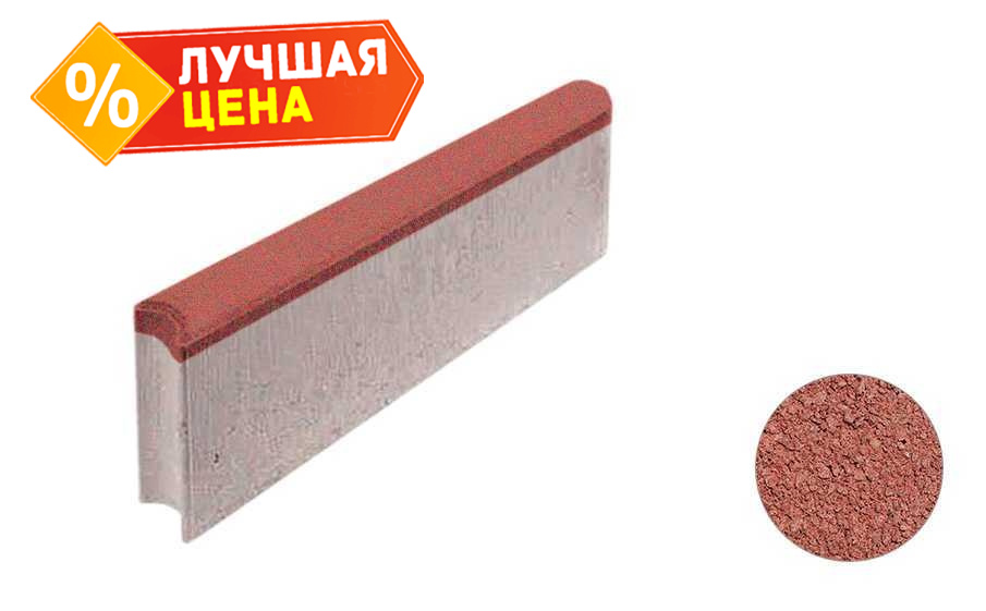 Тротуарный бордюр с шарнирным стыком ВЫБОР БРШ 50.20.8 неполный прокрас, Гранит красный 500*200*80 мм